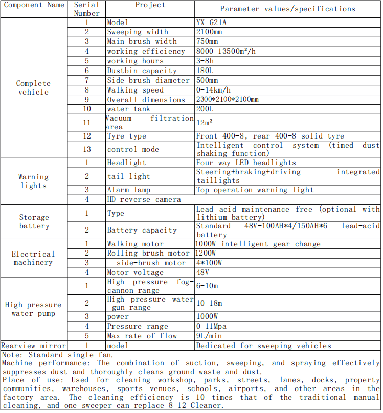 محل استفاده: برای تمیز کردن کارگاه ، پارک ها ، خیابان ها ، خطوط ، اسکله ها ، املاک و مستغلات ، انبارها ، مکانهای ورزشی ، مدارس ، فرودگاه ها و سایر مناطق در منطقه عملی استفاده می شود. راندمان تمیز کردن 10 برابر از کتابچه راهنمای سنتی است و یک جاروبرقی می تواند 8-12 تمیز کننده را جایگزین کند