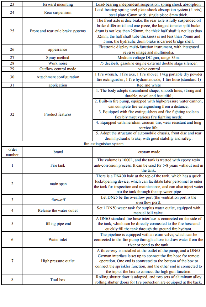 این کاملاً با نیازهای آتش نشانی مکان های کوچک مانند جوامع شهری ، شهرها و روستاها ، پارک های منظره و غیره سازگار است. این نه تنها می تواند به طور مؤثر با آتش سوزی های اولیه مقابله کند ، بلکه بازرسی های روزانه پیشگیری از آتش و عملکردهای تبلیغاتی را نیز انجام می دهد. این یک تجهیزات مهم برای ساختن یک سیستم آتش نشانی "پوشش کامل ، پاسخ سریع" است و به طور موثری کاستی های کامیون های آتش نشانی بزرگ را در میدان آتش نشانی ترمینال تشکیل می دهد.