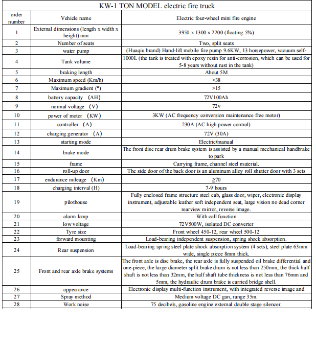 کامیون آتش نشانی برقی مدل KW-1این یک مکمل مهم برای سیستم حفاظت از آتش سوزی سنتی است ، به ویژه برای جنگ های اولیه آتش سوزی ، محیط های باریک و پیشگیری روزانه مناسب است. این محیط سازگار با محیط زیست ، اقتصادی و عملی است و برای ارتقاء در جوامع ، نقاط دیدنی ، پارک های صنعتی و سایر سناریوها مناسب است.