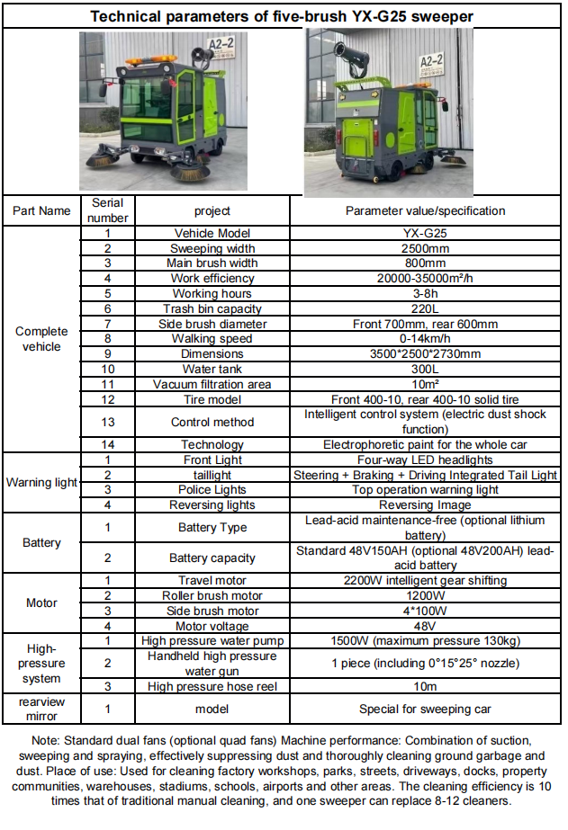 عملکرد دستگاه: ترکیبی از مکش ، جارو و پاشش ، سرکوب موثر گرد و غبار و تمیز کردن کامل زباله های زمینی و اعتماد به نفس.
