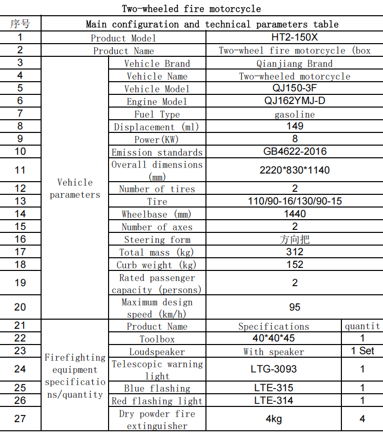 موتور سیکلت آتش نشانی All-Train عملکرد بسیار خوبی در خارج از جاده دارد. این می تواند به سرعت و انعطاف پذیر آتش نشانی و نجات در جاده های کوهستانی ناهموار یا خیابان های باریک را انجام دهد. در صورت خطر ناگهانی آتش سوزی ، می تواند 3 نفر را برای تشکیل یک تیم جنگی برای خاموش کردن منبع آتش سوزی حمل کند.